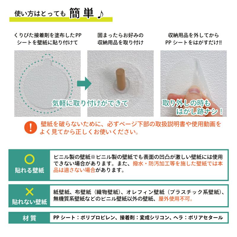 壁紙に取り付けできなかったフックやマグネット補助プレートなどの取り付けも可能に◎