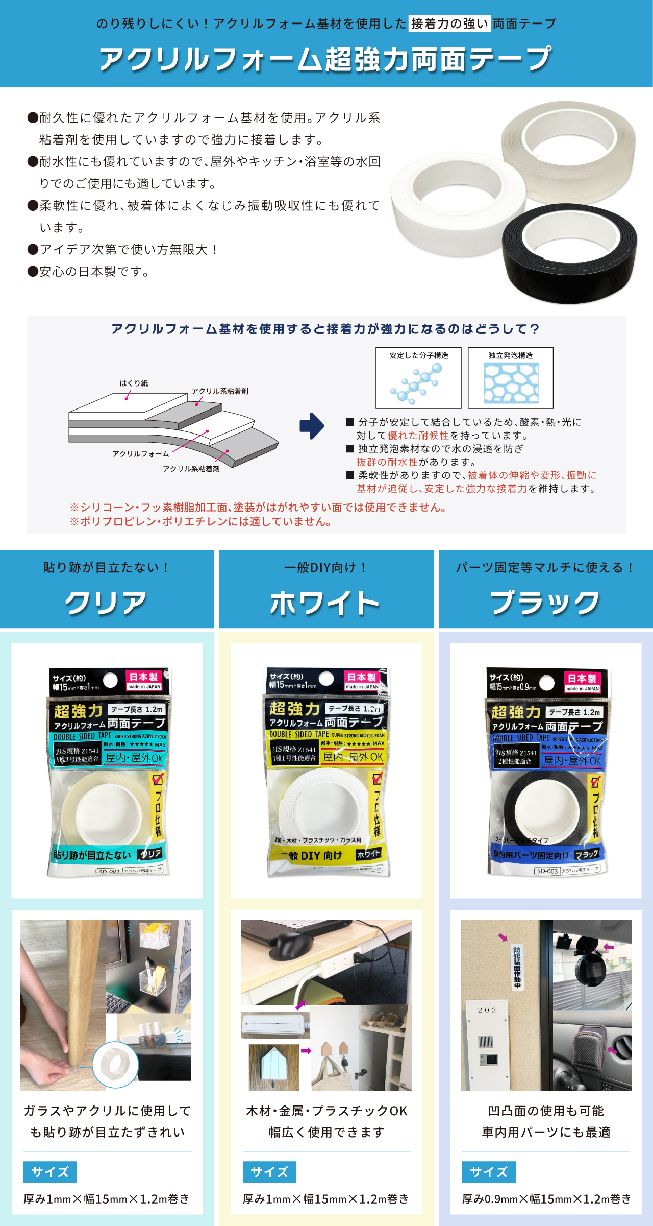 他の画像を見る 車内用パーツ固定等マルチに使えます! 超強力 アクリルフォーム 両面テープ ブラック 15mm幅×1.2m巻×厚み0.9mm 1巻 黒 【クリックポスト対応】 販売価格 ¥ 160 税込 カートに入れる お気に入りに登録する