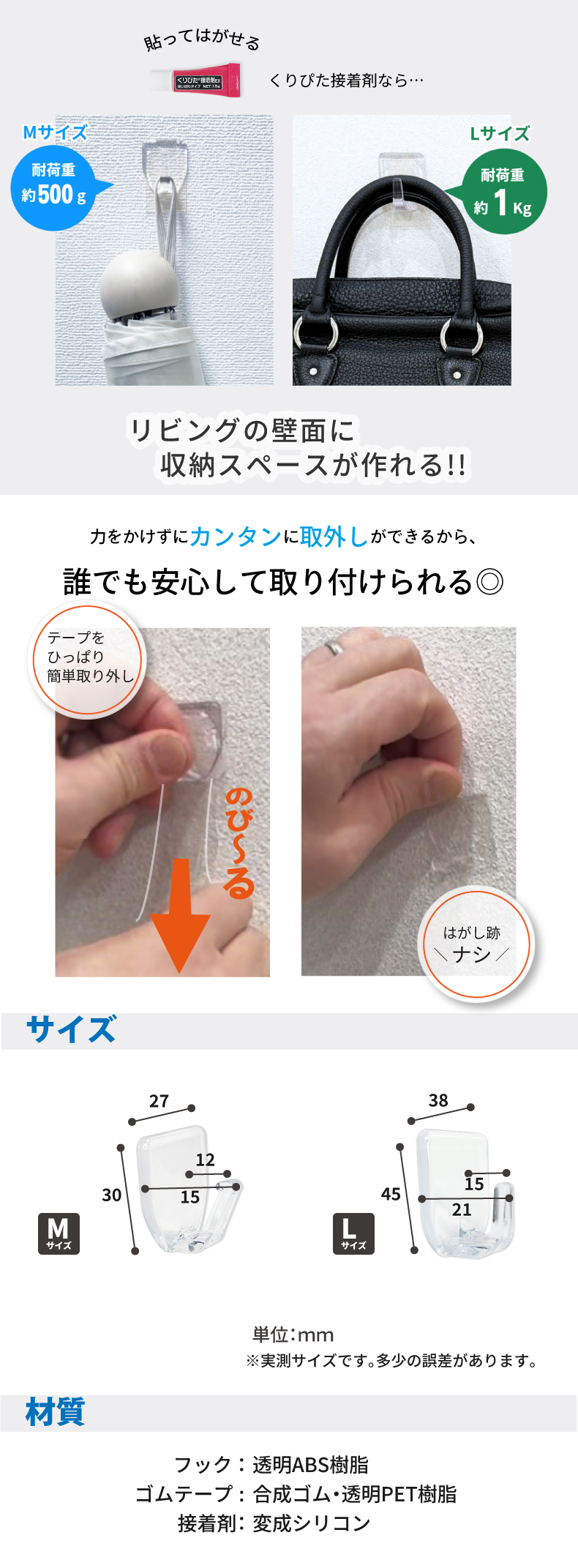 他の画像を見る クリアで目立たない!剥がし跡がのこりにくいから賃貸でも安心 くりぴたクリアフックL壁紙用 1kg用 1セット 接着剤タイプ 貼ってはがせる 【クリックポスト対応】 NEW 販売価格 ¥ 360 税込 在庫切れ 詳細を見る お気に入りに登録する