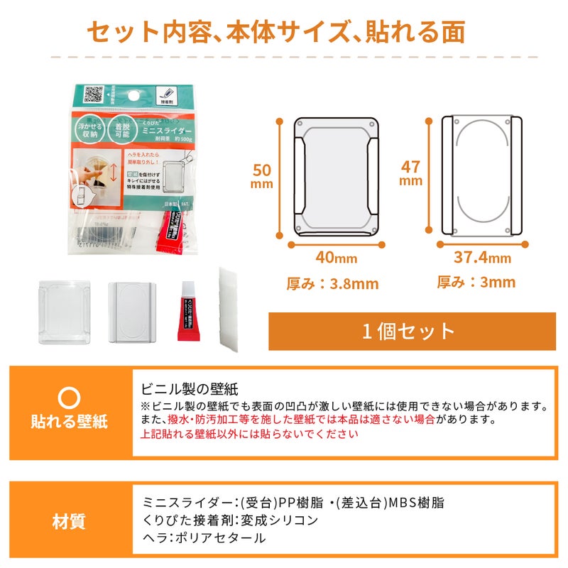| くりぴたクリアフック 壁紙用 接着剤タイプ L 1kg用・M 500g用 |