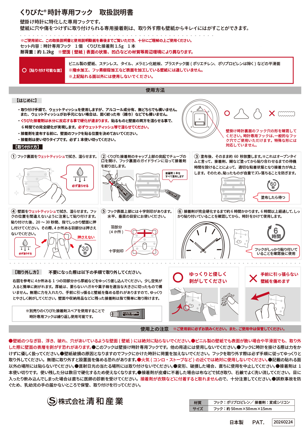 5. 時計専用フック1セット きれいにはがせる 【クリックポスト対応】