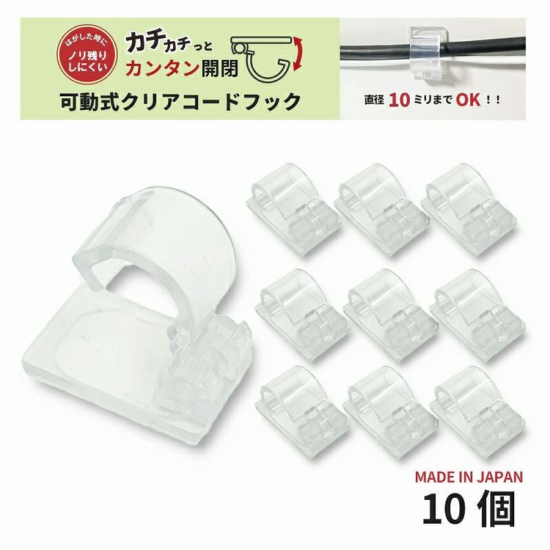 4. 【クリックポスト対応】可動式クリアコードフック 10個入 コード ケーブル まとめられる フック 開閉式
