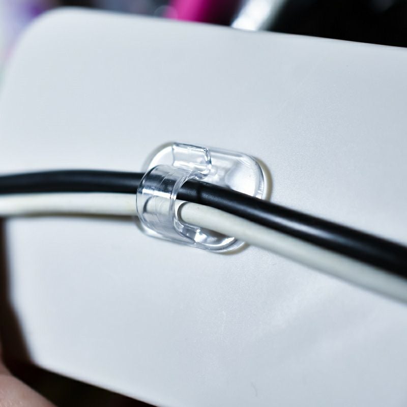 配線コードやケーブルなどの固定に使える、透明度の高いコードフックです。