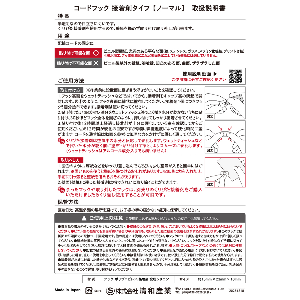 接着剤タイプのコードフック