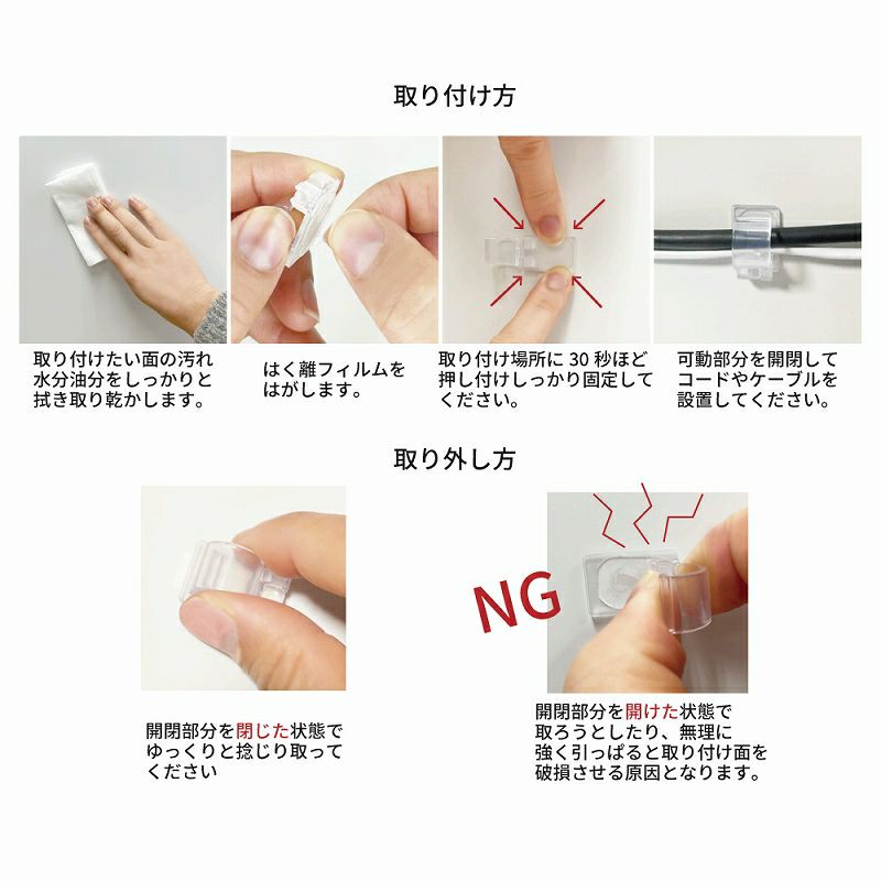 4. 【クリックポスト対応】可動式クリアコードフック 10個入 コード ケーブル まとめられる フック 開閉式