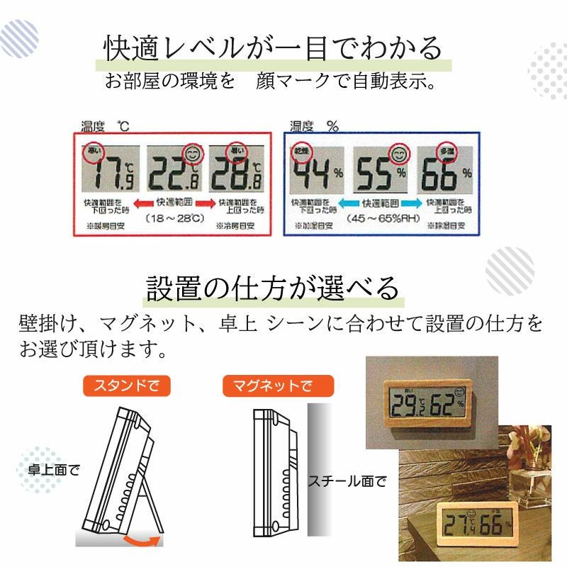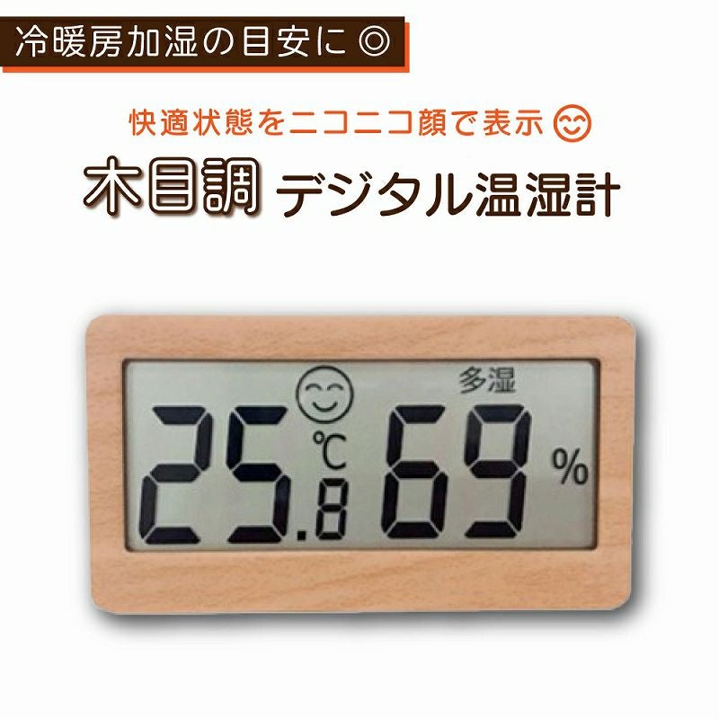 【お部屋の快適状態をニコニコ顔で表示】木目調 デジタル温湿度計