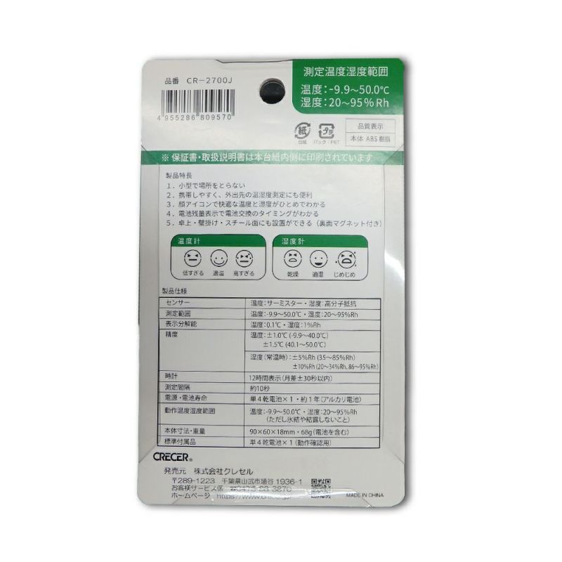 【顔アイコンでお部屋の状態を表示】木目調 時計付き デジタル温湿度計