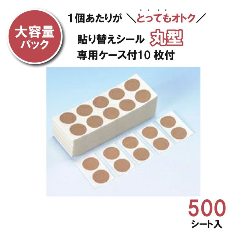 5. 貼り替えシール丸型10枚付タイプ500シート入 専用ケース付