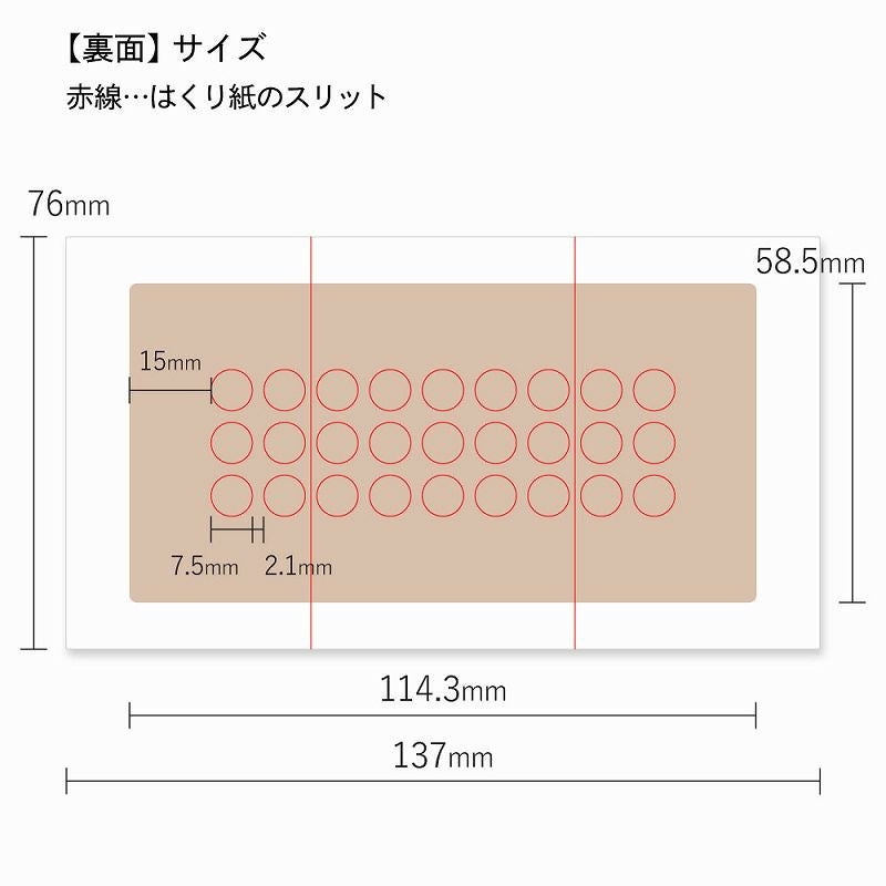 ■はくり紙の丸い部分には直径7mmまでのゲルマニウム粒等を貼る事ができます。 SCH-27Hでは最大27粒、SCH-54Hでは最大54粒、SCH-81Hでは最大81粒貼る事ができます。 ※もちろん左の図の例のように治療器粒をお好みの場所、間隔で貼り付けて 使用する事もできます。 |