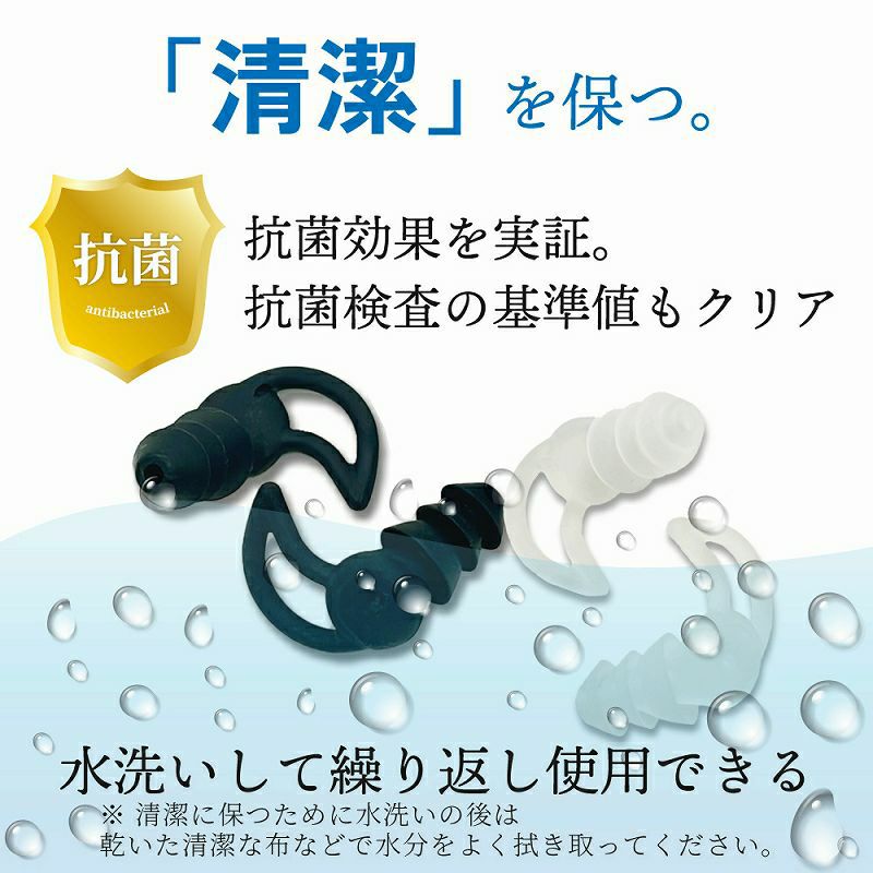 耳にフィットするスパイラル構造で、水泳やシャワーの際にもオススメです。
