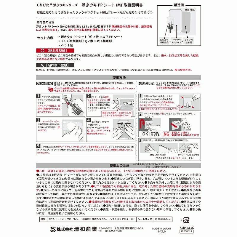 他の画像を見る 壁面だって収納スペース 【クリックポスト対応】浮きウキPPシート(セット) S 約105×52mm くりぴた接着剤 ヘラ付 貼ってはがせる NEW 販売価格 ¥ 260 税込 片づけしやすい収納に! カートに入れる お気に入りに登録する
