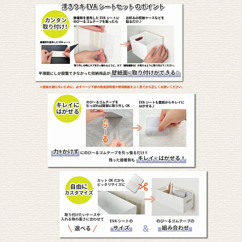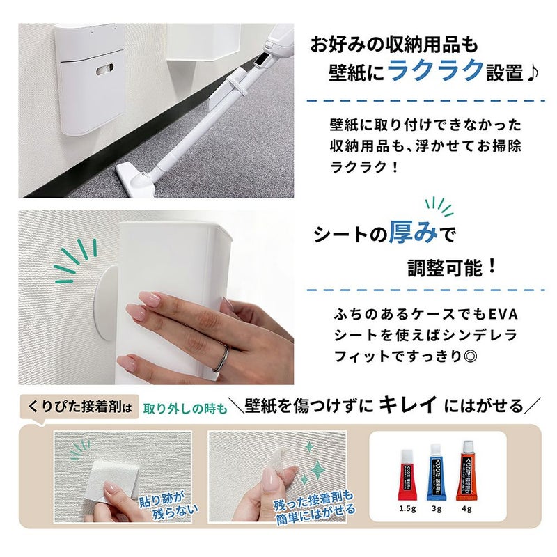 他の画像を見る 壁紙を傷めない賃貸でも安心!! 強力接着 なのに 力をかけずにキレイに剥がせる♪ 【クリックポスト対応】浮きウキEVAシートセット L 約210×150mm くりぴた接着剤 のび~るゴムテープ ヘラ付 NEW 販売価格 ¥ 2,300 税込 お気に入りの収納ケースを壁面に取り付け♪ カートに入れる お気に入りに登録する
