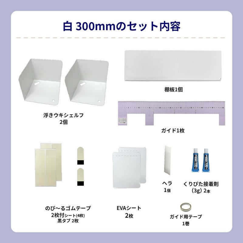 他の画像を見る 壁紙面に棚作り! 浮きウキ棚板・シェルフセット 300mm 【白/耐荷重約2kg】 くりぴた接着剤 ヘラ付 貼ってはがせる NEW 販売価格 ¥ 4,091 税込 壁紙面に棚作り! カートに入れる お気に入りに登録する