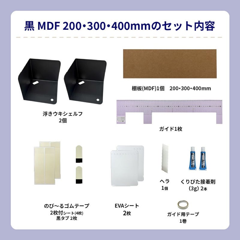 他の画像を見る 着脱可能な棚作り! 浮きウキ棚板・シェルフセット MDF板200・300・400mm 【黒/耐荷重約2kg】 くりぴた接着剤 ヘラ付 貼ってはがせる NEW 販売価格 ¥ 3,791 税込 〜 販売価格 ¥ 税込 壁紙面に棚作り! 詳細を見る お気に入りに登録する