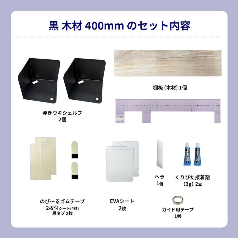 他の画像を見る 壁紙面に棚作り! 浮きウキ棚板・シェルフセット 木材板400mm 【黒/耐荷重約2kg】 くりぴた接着剤 ヘラ付 貼ってはがせる NEW 販売価格 ¥ 3,541 税込 壁紙面に棚作り! カートに入れる お気に入りに登録する