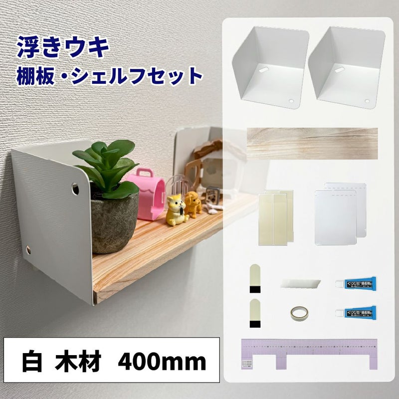他の画像を見る 壁紙面に棚作り! 浮きウキ棚板・シェルフセット 木材板400mm 【白/耐荷重約2kg】 くりぴた接着剤 ヘラ付 貼ってはがせる NEW 販売価格 ¥ 3,541 税込 壁紙面に棚作り! カートに入れる お気に入りに登録する
