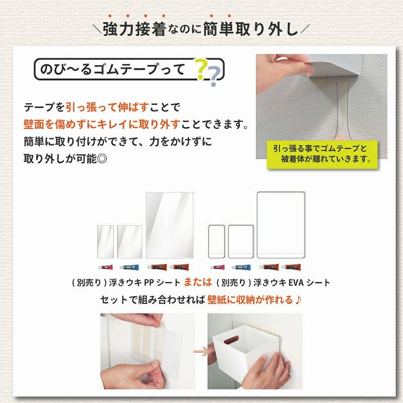 他の画像を見る 簡単取り付けで壁紙に収納を!貼り直しスペアにも のび~るゴムテープ 0.5mm厚 2LSサイズ(105×27mm) 4枚(2枚付き×2シート) 【クリックポスト対応】 NEW 販売価格 ¥ 480 税込 壁紙にも浮かせる収納が気軽につくれる!スペアにも! カートに入れる お気に入りに登録する