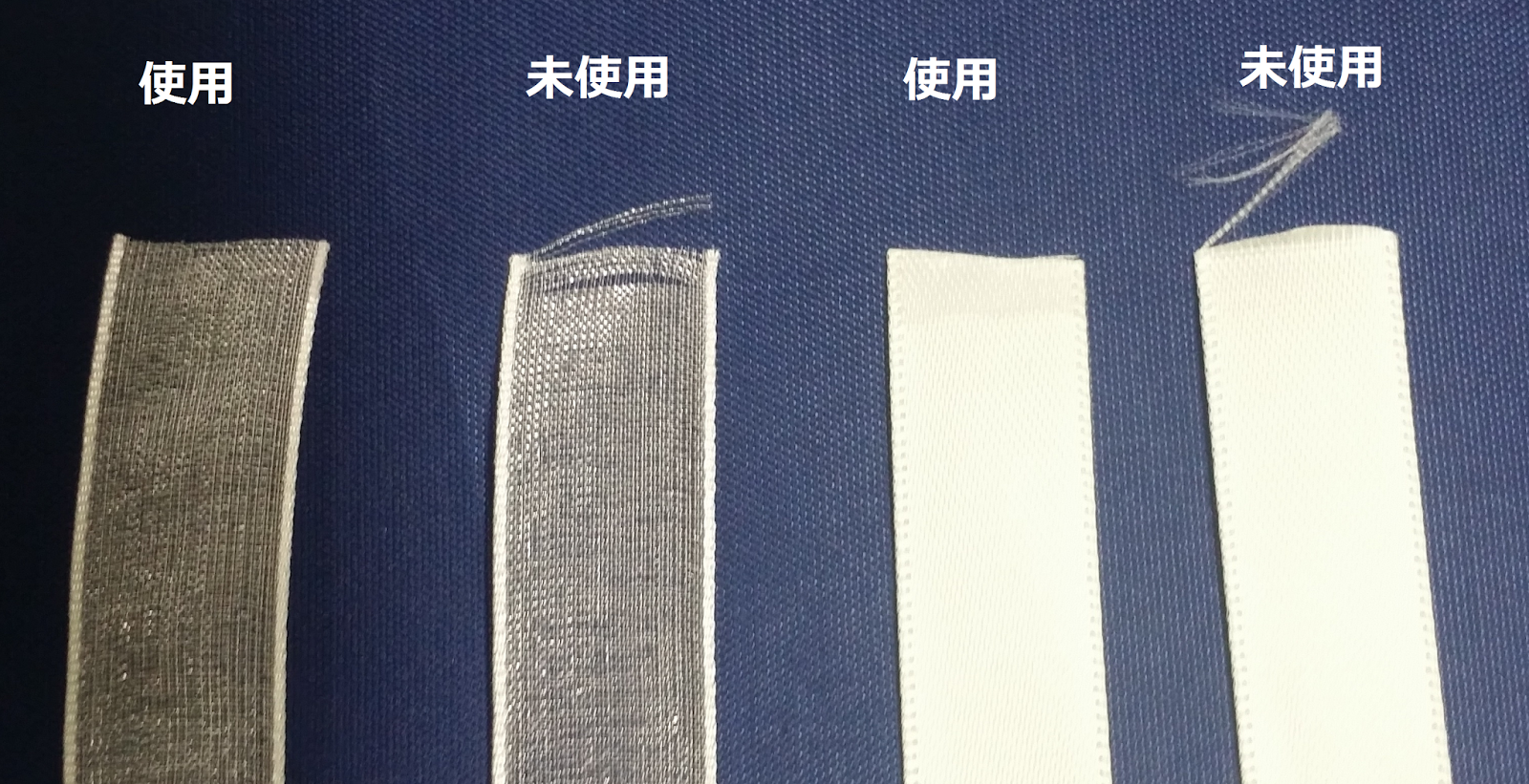 下の画像は、オーガンジーとサテンのリボンで使用・未使用の比較テストをした時の物です。