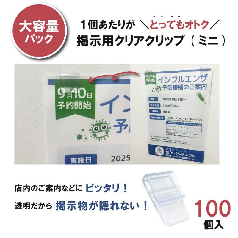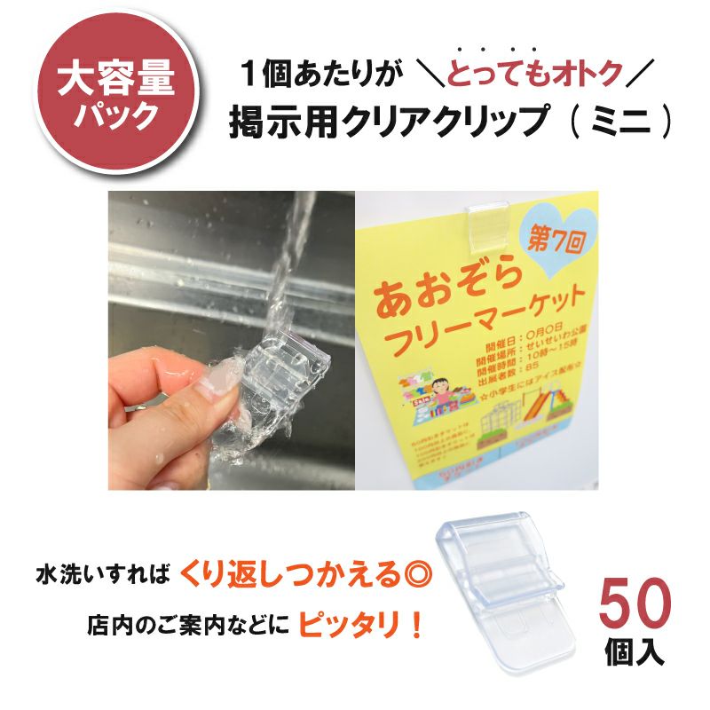 他の画像を見る 当ショップだけの限定販売♪とってもお得な大容量パック 掲示用クリアクリップ(ミニ) 100個入【クリックポスト対応】 販売価格 ¥ 2,900 税込 カートに入れる お気に入りに登録する
